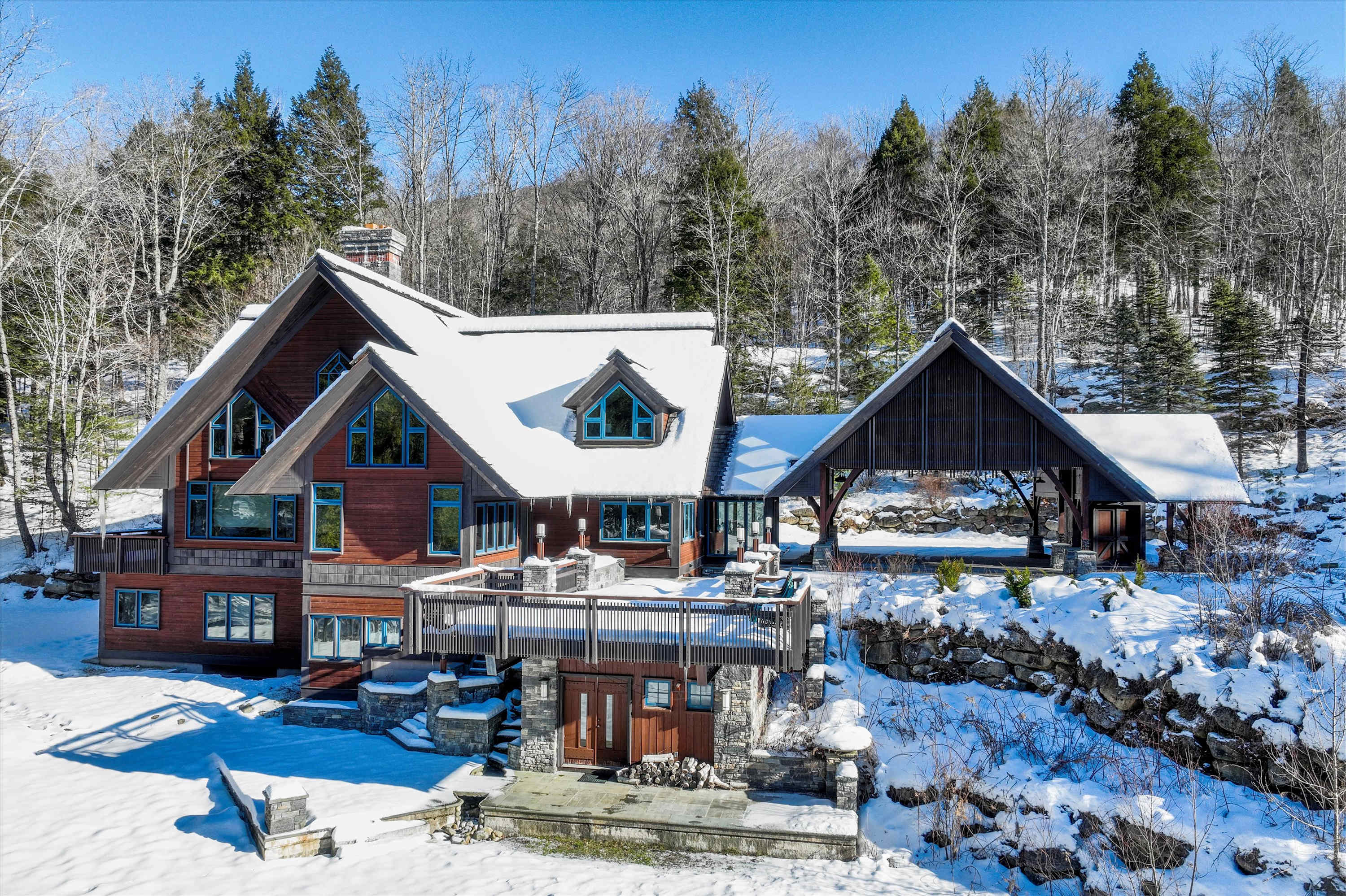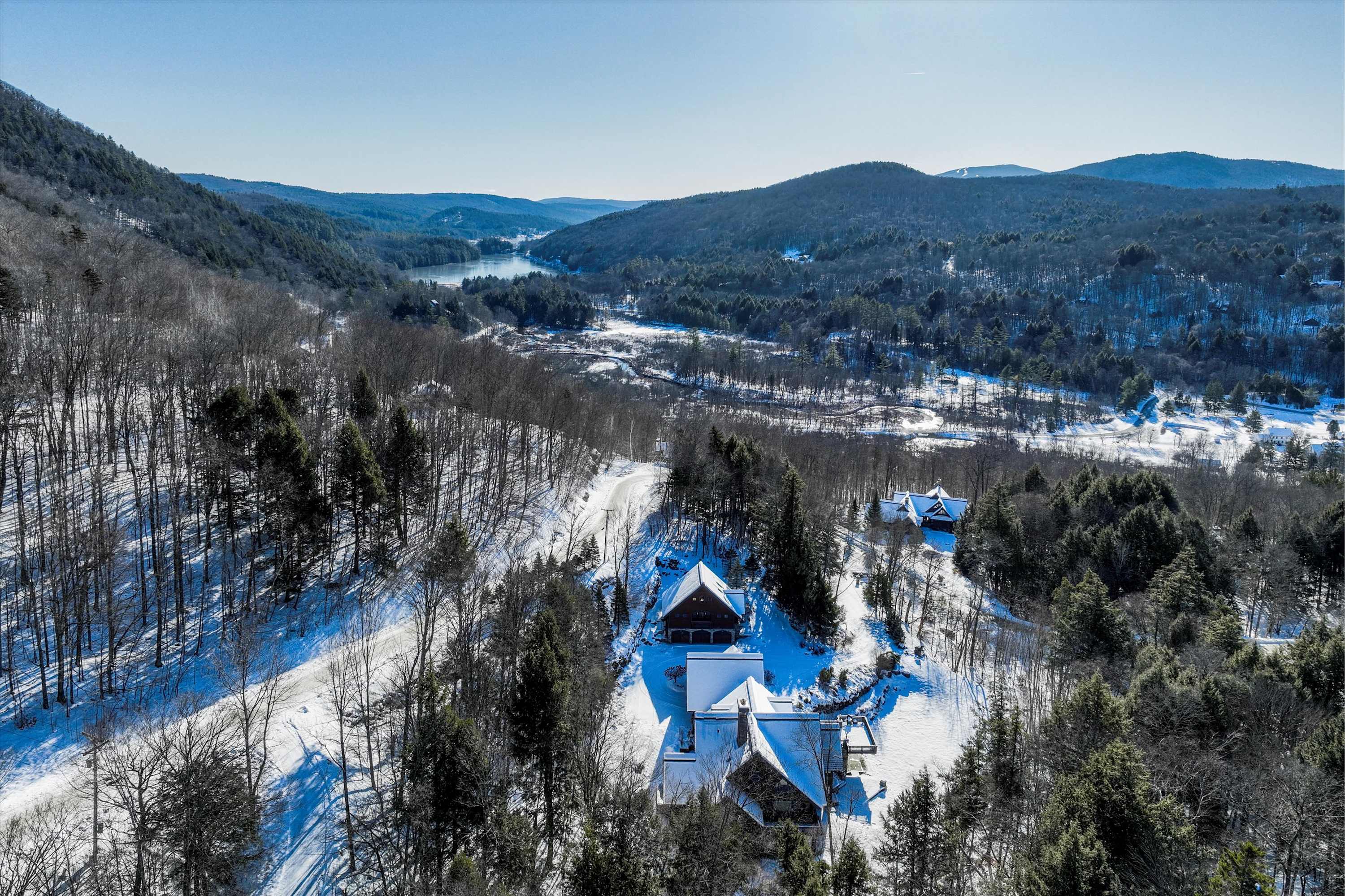 Surrounded by forest and Vermont quiet, the estate feels deeply secluded while remaining perfectly positioned between two ski regions: