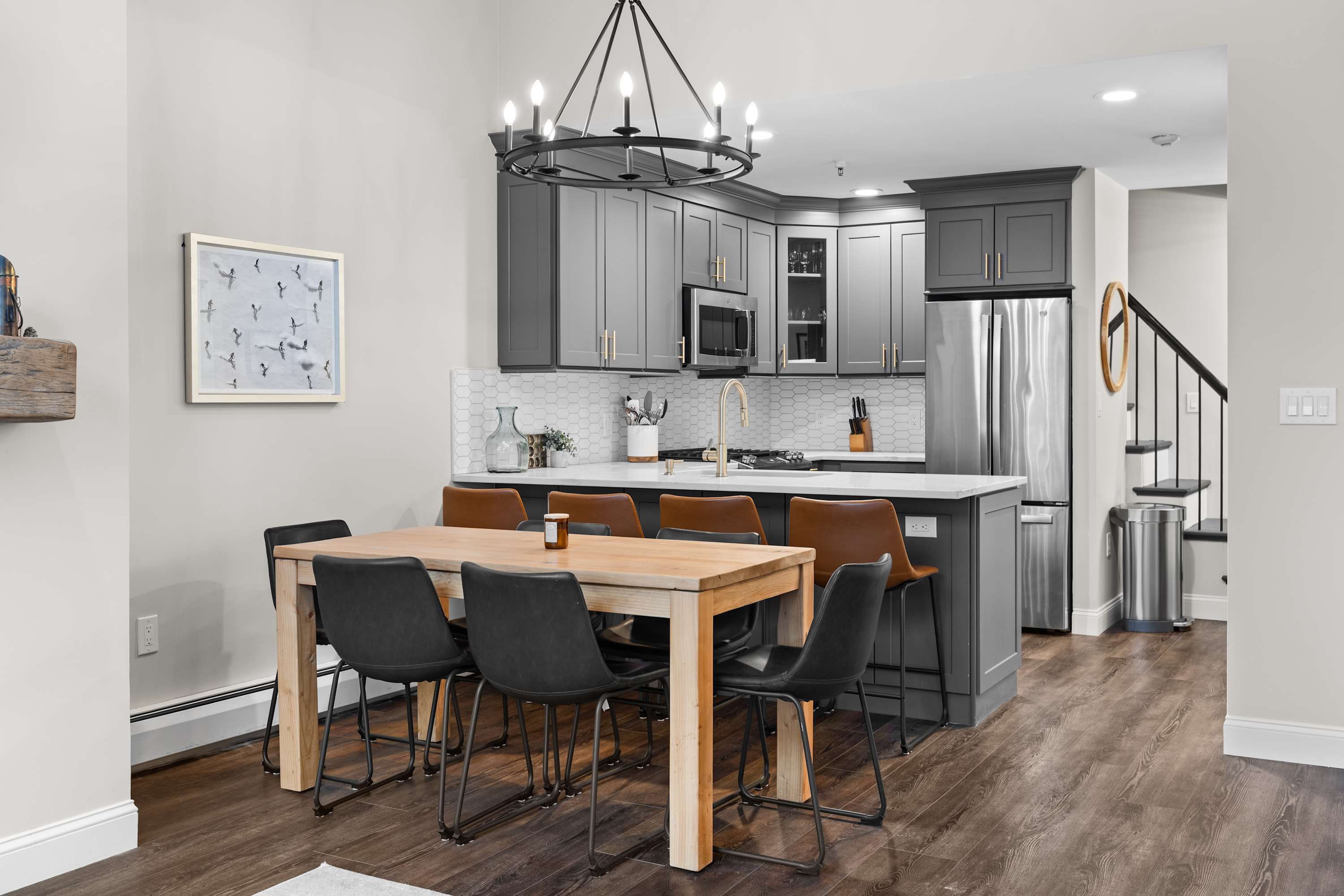 The entryway is designed for mountain living with room to store gear and settle in smoothly. Guests also have access to Winterplace amenities including the indoor pool, hot tubs, and community gathering spaces, adding more to enjoy beyond the slopes.