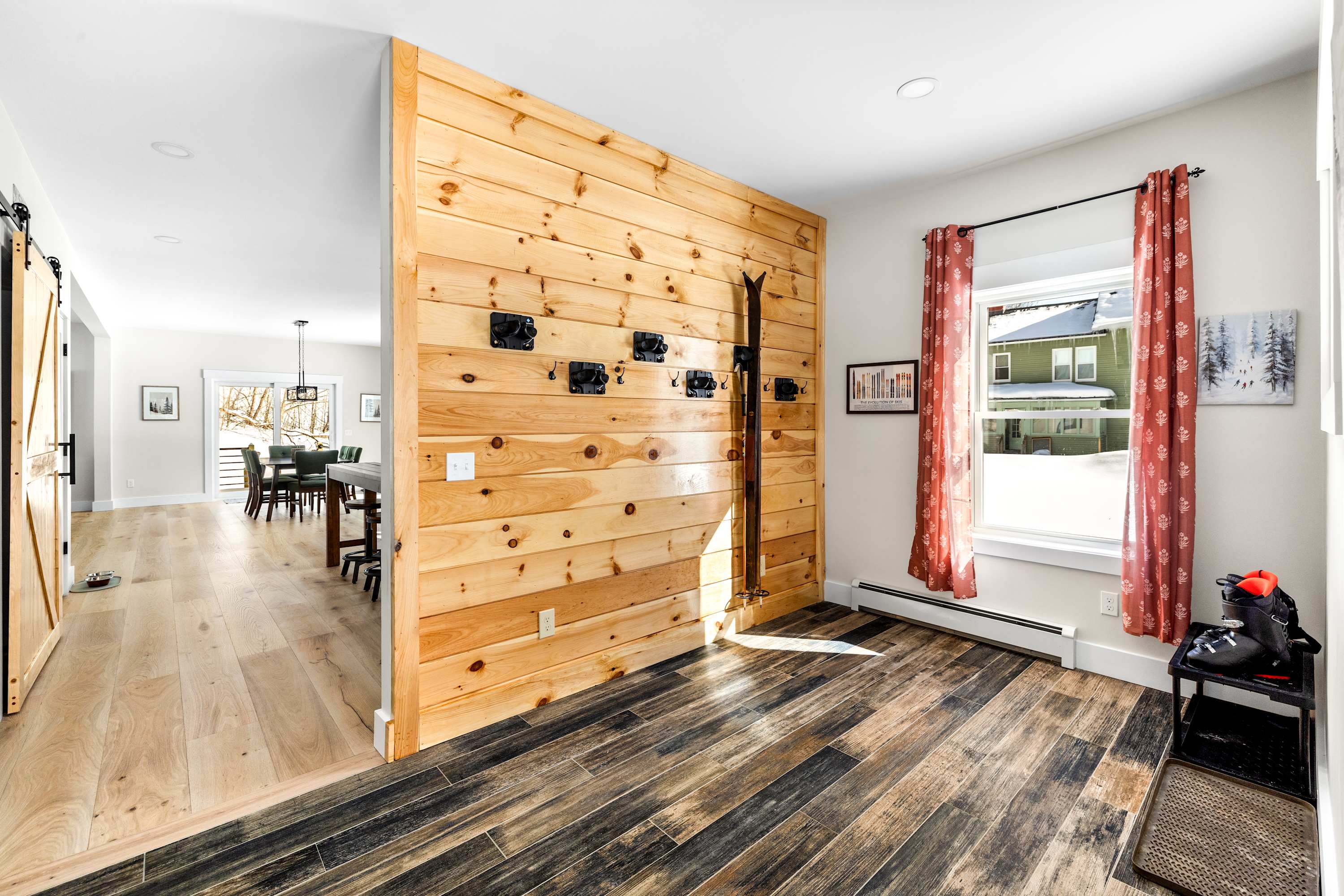 One of the most practical features of the home is the spacious entry and mudroom area. With hooks and dedicated space for ski gear, boots, and jackets, it makes transitioning between outdoor adventures and cozy indoor comfort easy for everyone.