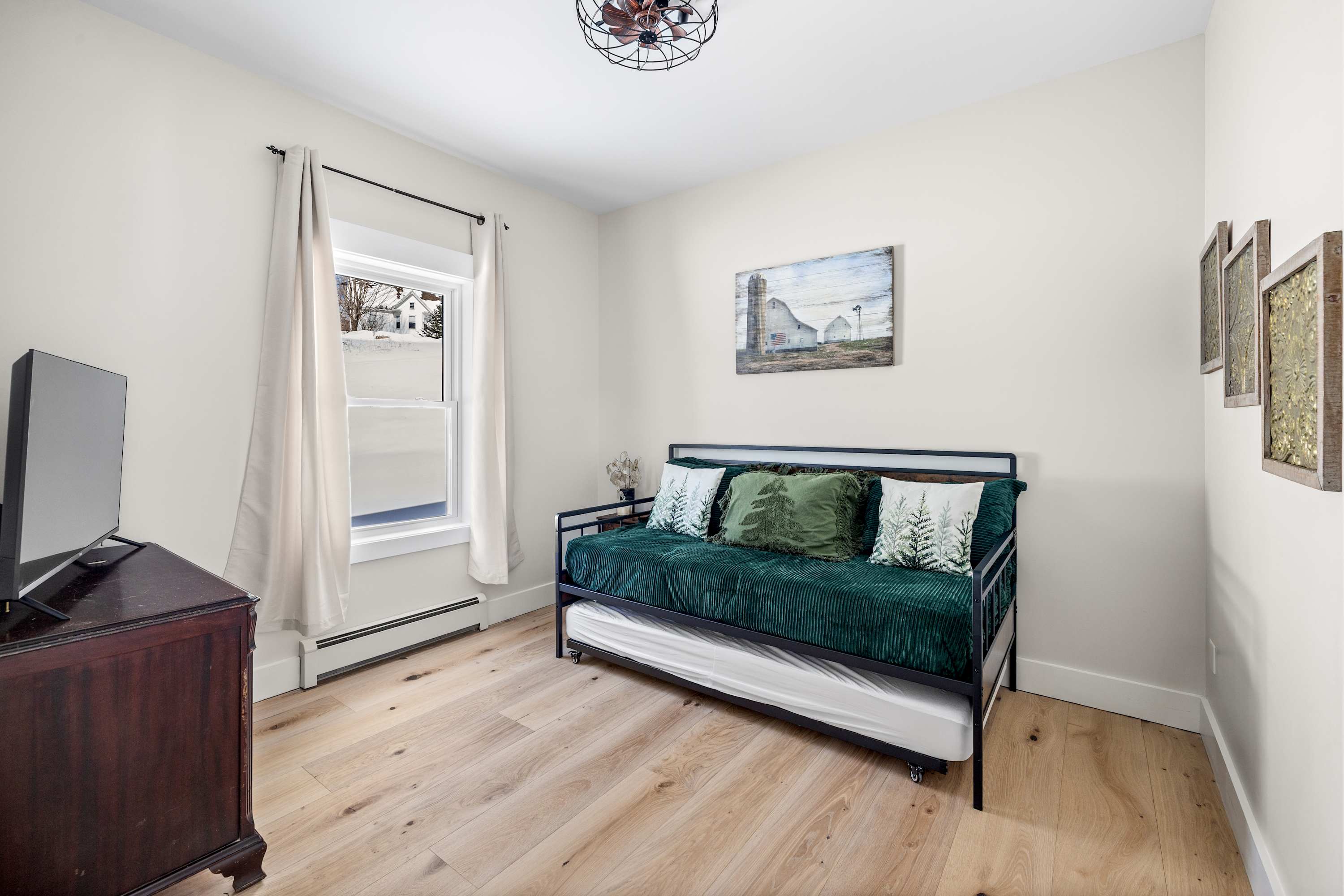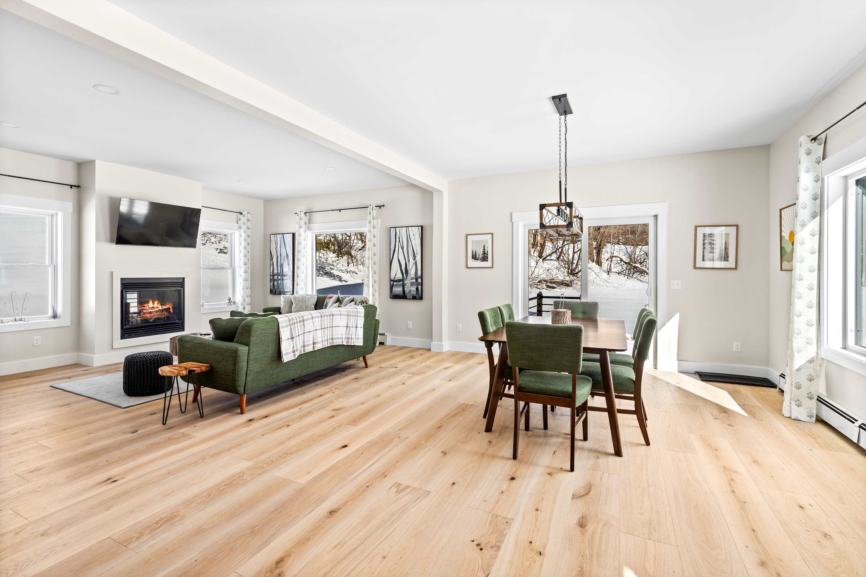 Additional features include smart TVs for streaming, a washer and dryer for longer stays, driveway parking for up to four vehicles, and pet-friendly accommodations so your four-legged family members can enjoy Vermont with you.