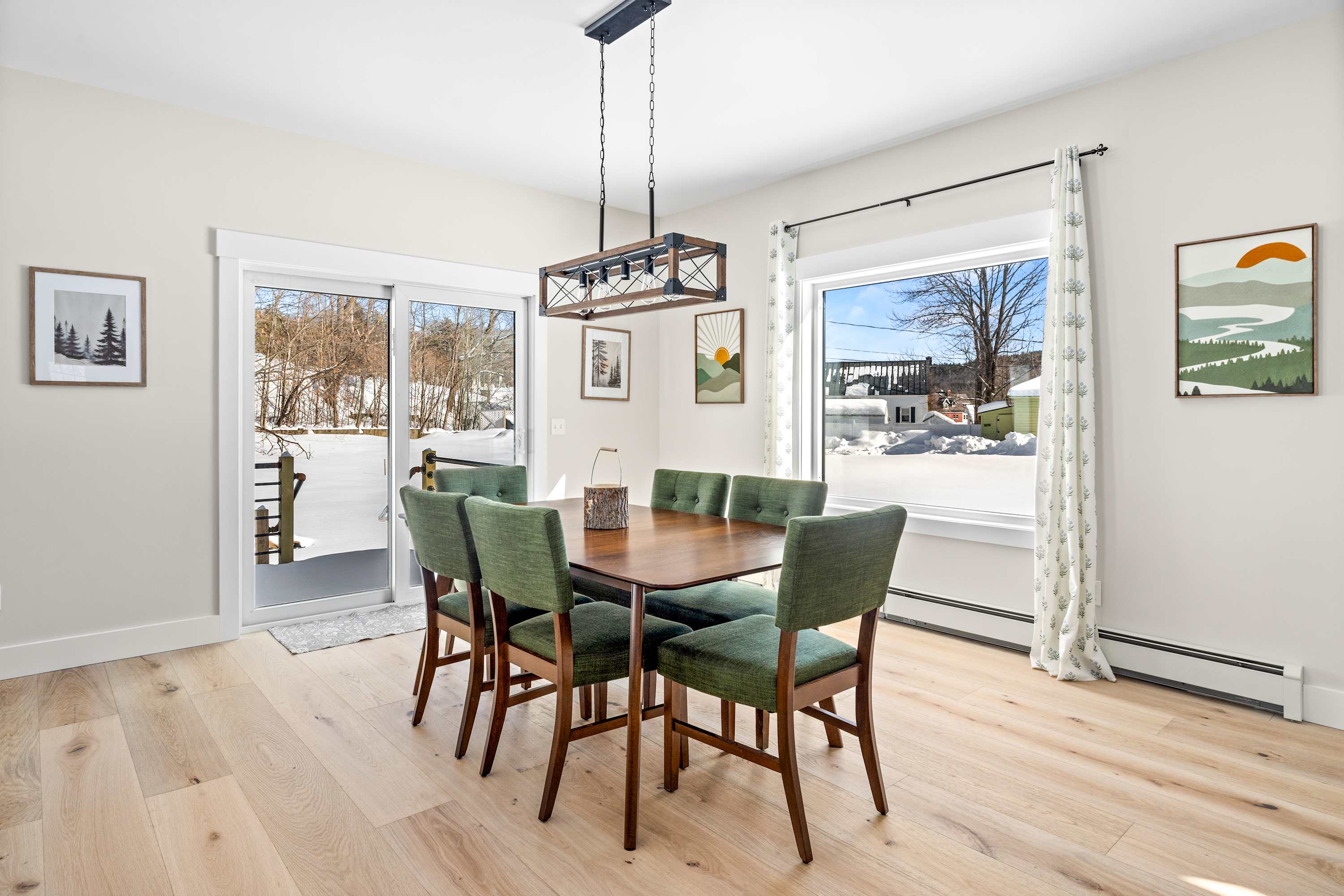 Just outside, the covered front porch offers a quiet place to step out and enjoy the fresh Vermont air.