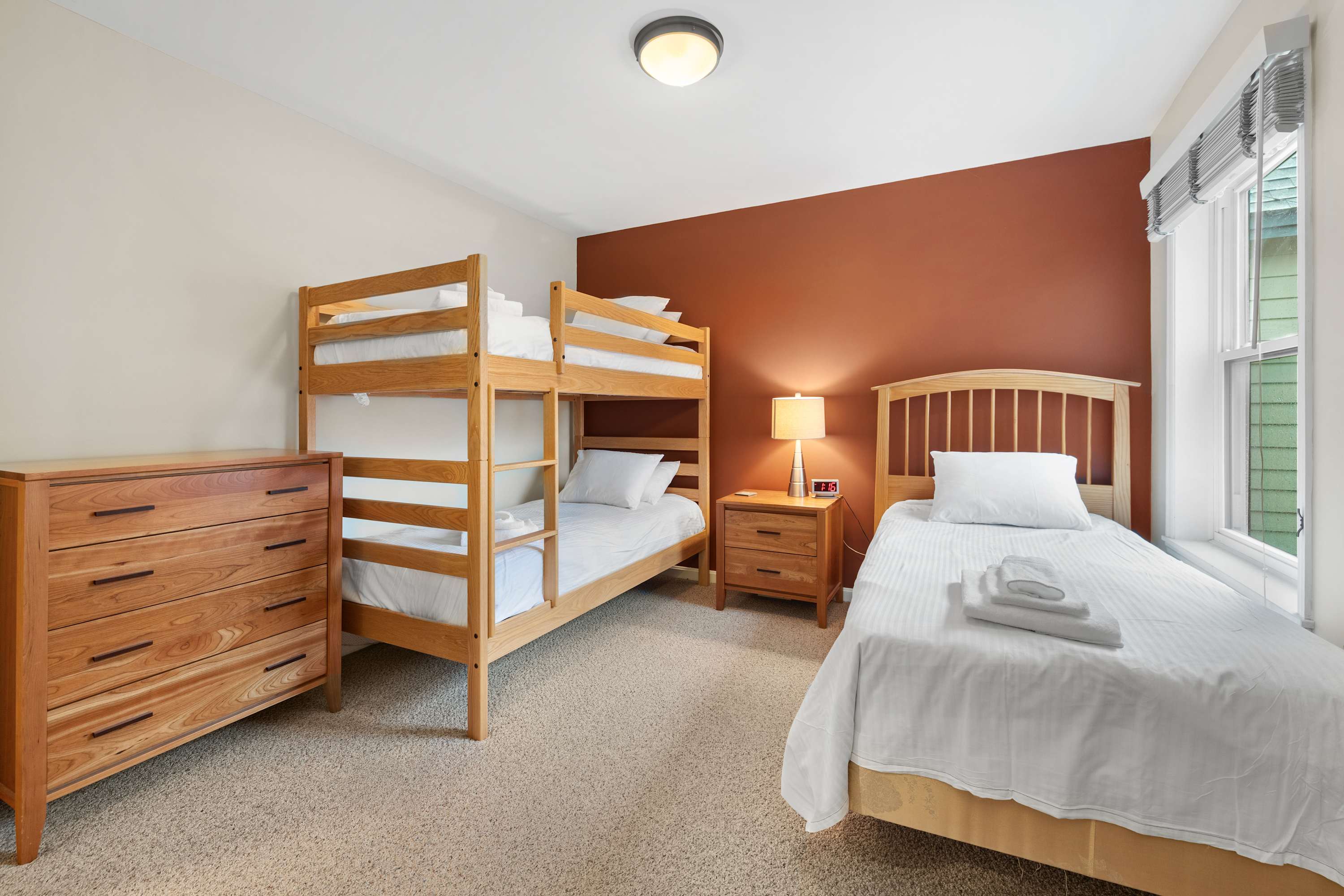 Upstairs, the loft adds another layer of comfort with a full bed and two twin beds—an easy space for older kids, teens, or cousins who like staying up later. The layout naturally encourages both connection and breathing room, giving families the balance they need during a mountain getaway.