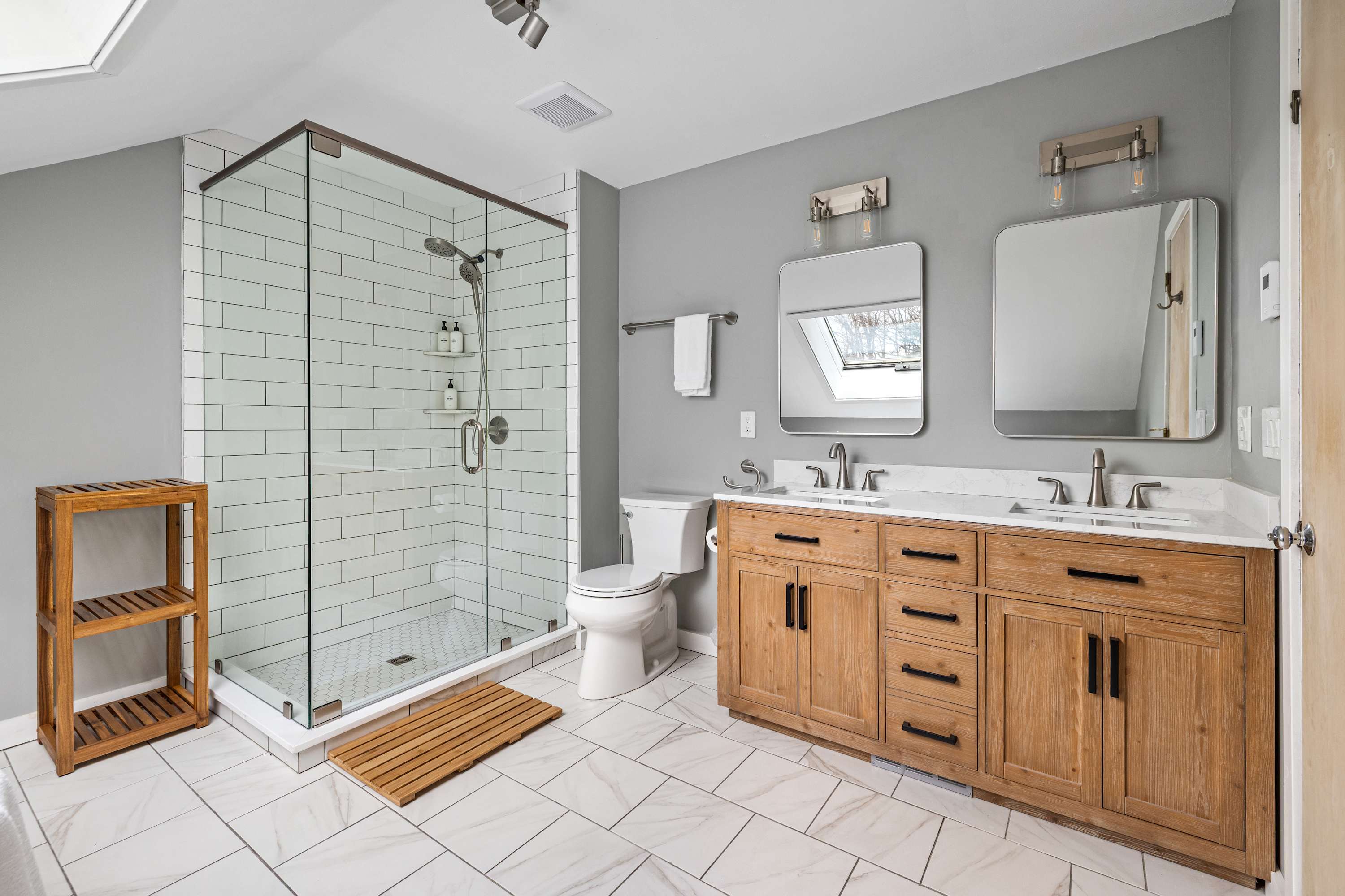 The main level serves as the heart of the home. Enter through a practical mudroom with space for gear, then step into the open kitchen, dining, and living area designed for gathering and relaxing together. A convenient half bath is also located on this level.