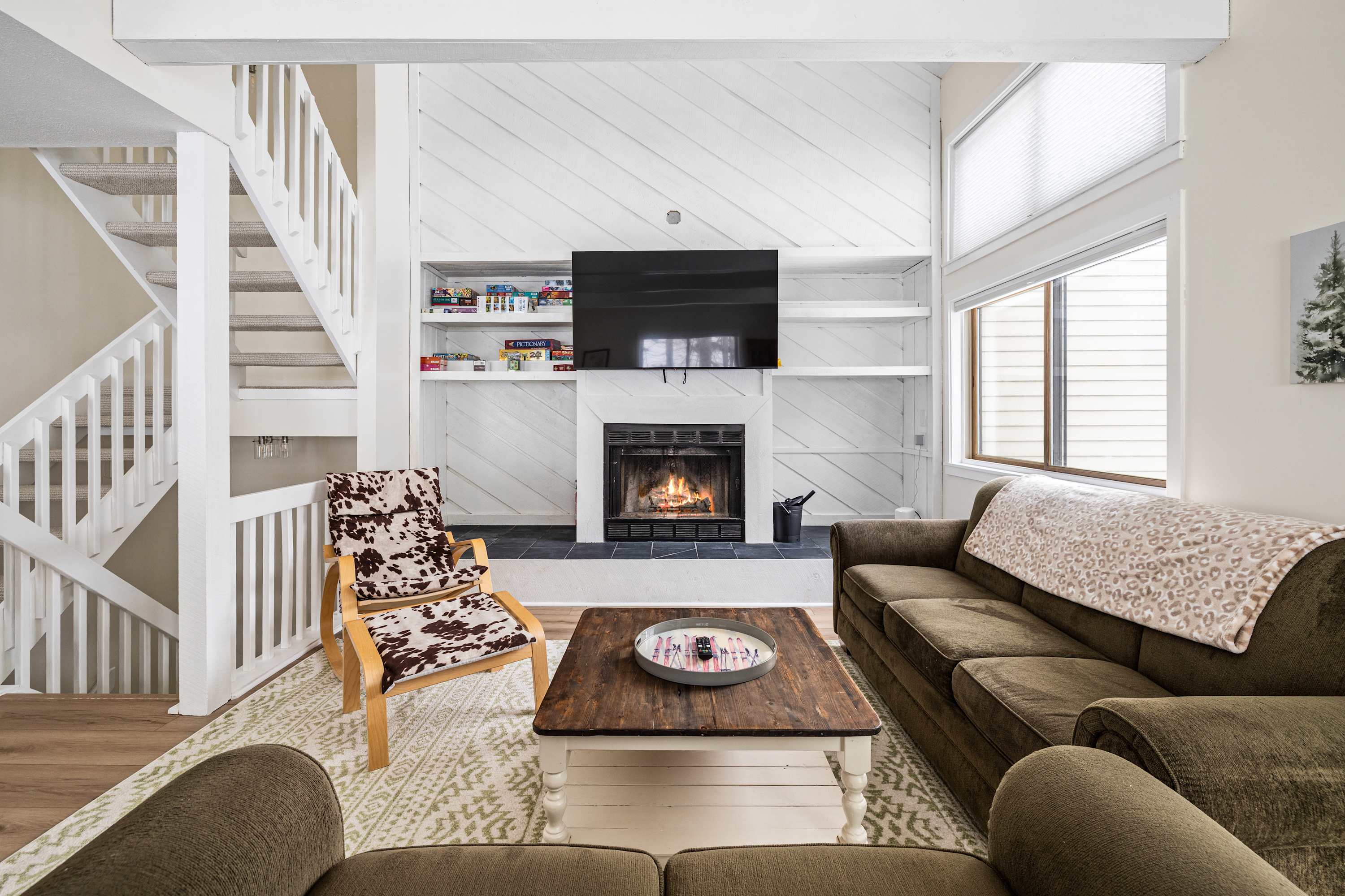 The fireplace is not operational and is not available for guest use. There are no shared amenities at Trailside, helping maintain a quiet, residential feel that many families appreciate.