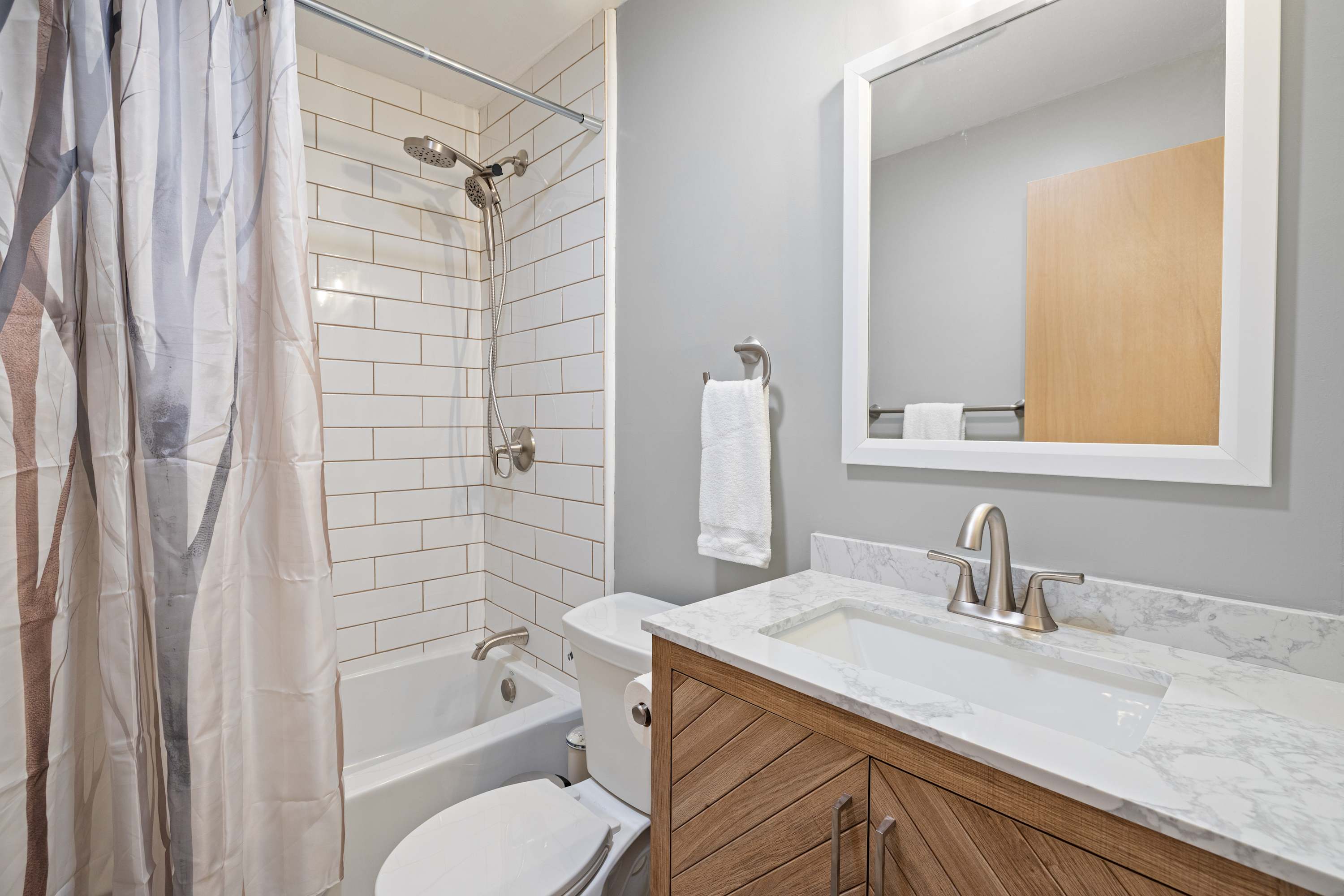 Every bedroom features a true queen bed, and no bedrooms share walls with the kitchen or living room, allowing for quiet mornings and restful evenings. WiFi is reliable for remote work or streaming, and parking is available for up to two vehicles.